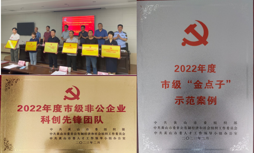 區(qū)委領(lǐng)導(dǎo)為獲評2022年度省、市級先進(jìn)典型授牌。我公司榮獲“2022年度市級非公企業(yè)科創(chuàng)先鋒團(tuán)隊”和“2022年度市級“金點(diǎn)子”示范案例”榮譽(yù)稱號。