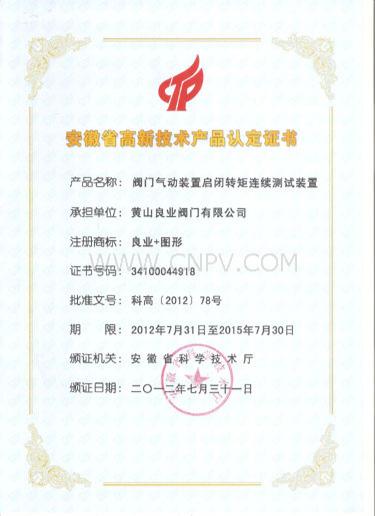 【導(dǎo)讀】泵閥交易網(wǎng)訊黃山良業(yè)閥門有限公司研制的“閥門氣動裝置啟閉轉(zhuǎn)矩連續(xù)測試裝置”因其有多項技術(shù)創(chuàng)新和國家專利,并經(jīng)用戶使用證明具有良好的市場前景,最近經(jīng)安徽省科技廳評審,榮獲2012年度安徽省高新技術(shù)產(chǎn)品認定證…